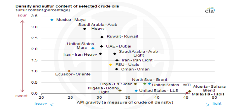 全球有兩百多種根據產地及品質劃分的不同種類原油: