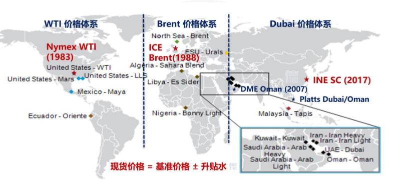 國際——Nymex WTI原油期貨、ICE Brent原油期貨,交易對象 輕質低硫原油